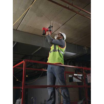 • Druga najmocniej uderzająca młotowiertarka bezprzewodowa SDS-plus w swojej klasie. Mocny mechanizm młota: dostarcza energię udaru 2,5 J przy małych drganiach 8,9 m/s².